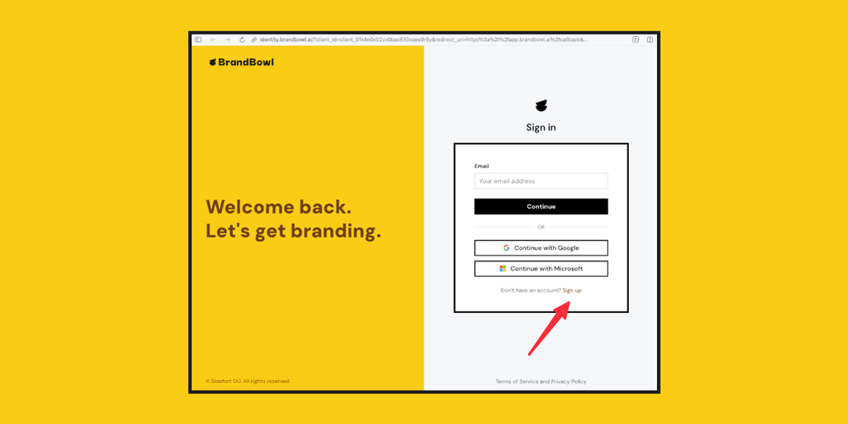 Click Sign up and create a free account. You can use social providers like Google or Microsoft, or setup and email and password combination.
