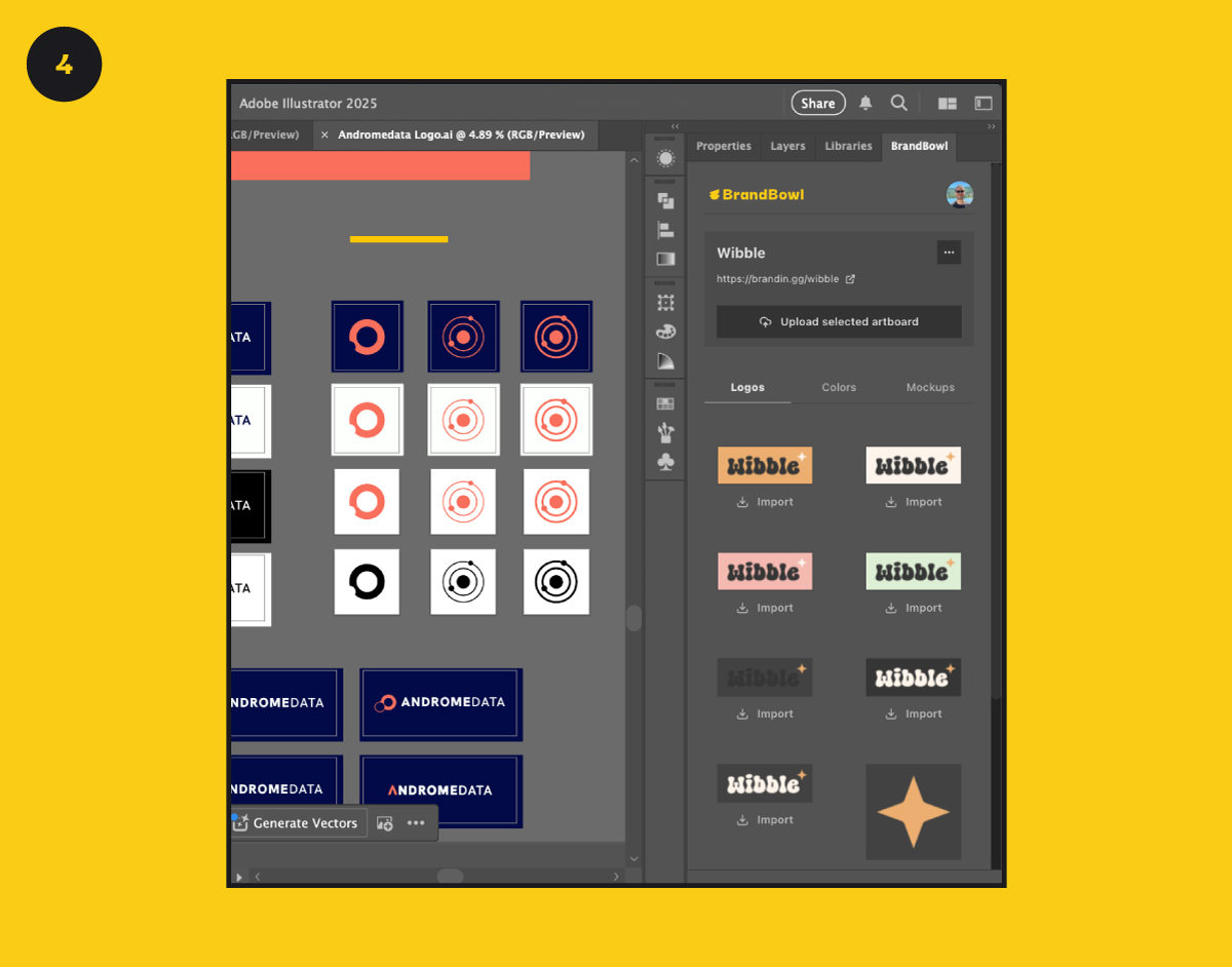 The BrandBowl plugin for Adobe Illustrator makes it simple to manage your brand assets without leaving your design workflow. Upload artboards directly into BrandBowl, bring assets back into Illustrator, and keep your brand guidelines updated in real time.