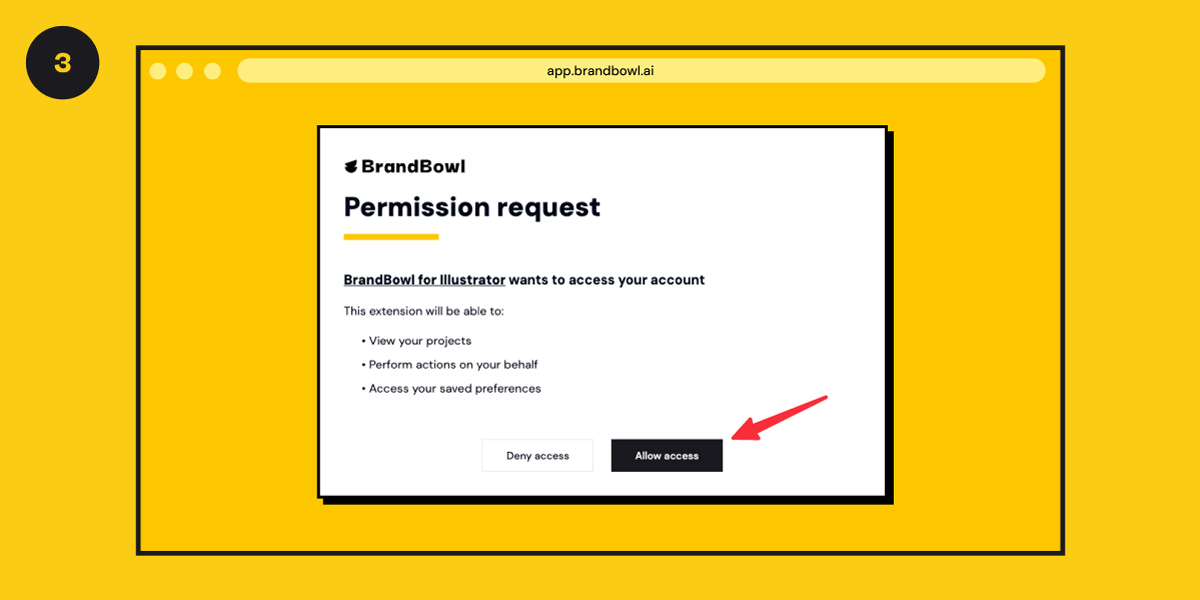 A browser window will open. Log into your BrandBowl account (or sign up if you haven’t yet). Allow access when prompted.