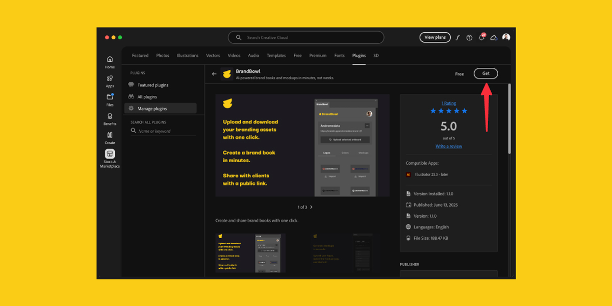 Open the plugin page on the Adobe Creative Cloud Marketplace.